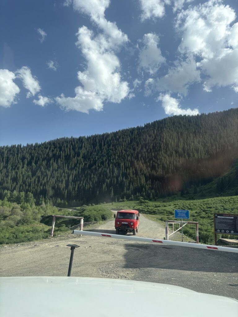 We set off from Almaty at 6:30 am; the city’s modern skyline—filled with sleek electric cars and bustling cafes—fading behind us. After four hours on the highway, we reached Charyn Canyon . Then we headed on to our next destination— Kaindy Lake. After an hour ,our 4×4 veered onto a rugged mountain path, lurching over rocks and splashing through icy streams. The relentless jolting churned my stomach, but I clenched my teeth, determined not to surrender to nausea. This was no leisurely tour—it was a plunge into the raw, untamed heart of Kazakhstan.