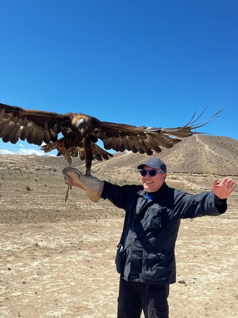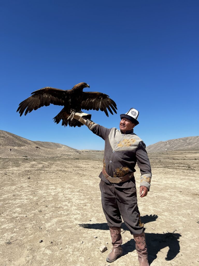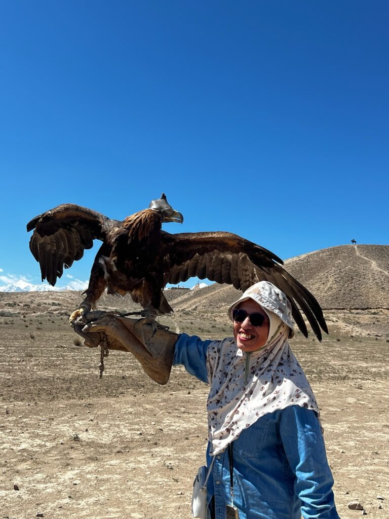 If you ever visited Kyrgyzstan. then do not miss this eagle hunting demonstration. Our demo was up in the mountain in Bokonbai. The owner really lives as a hunter and the family has been hunting for food for generations.