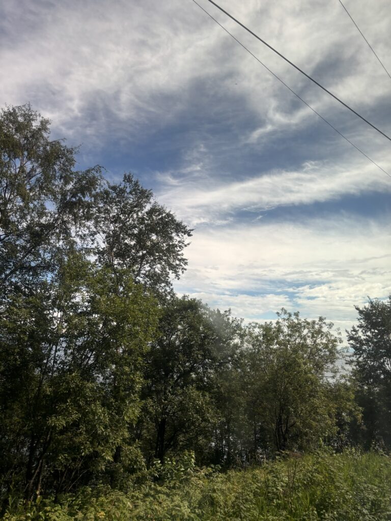 About two hours from Irkutsk, pine trees started to fill the land like the ones in Gorky Park. The dark shadows in the forest seem to keep many secrets.