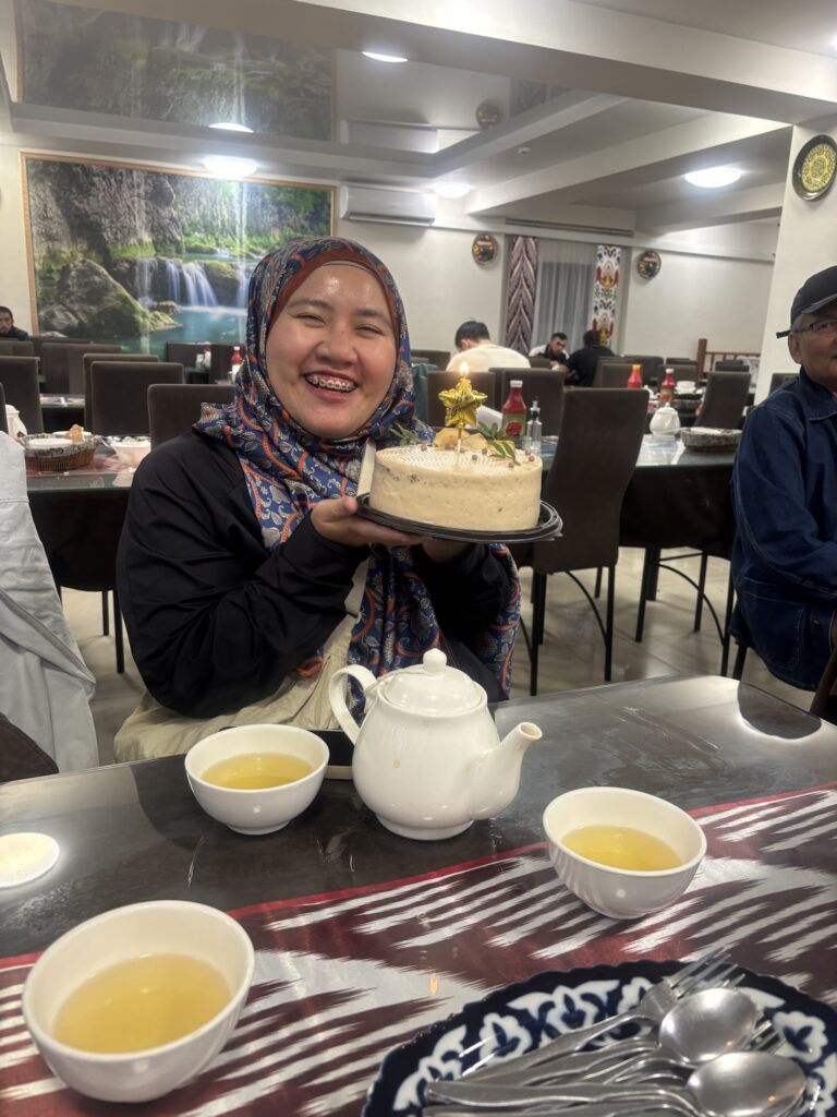 At the end of the road we entered what appeared to be an Uzbek restaurant. Immediately my plov tastebud came rushing back. I love the taste of buttery rice and the tender grilled meat together with mouth watering salad. Dinner was fantastic. As today is my daughter’s birthday they threw in a small celebration and am grateful for such deep concern and effort especially by Bro Salimi & Faisal.
