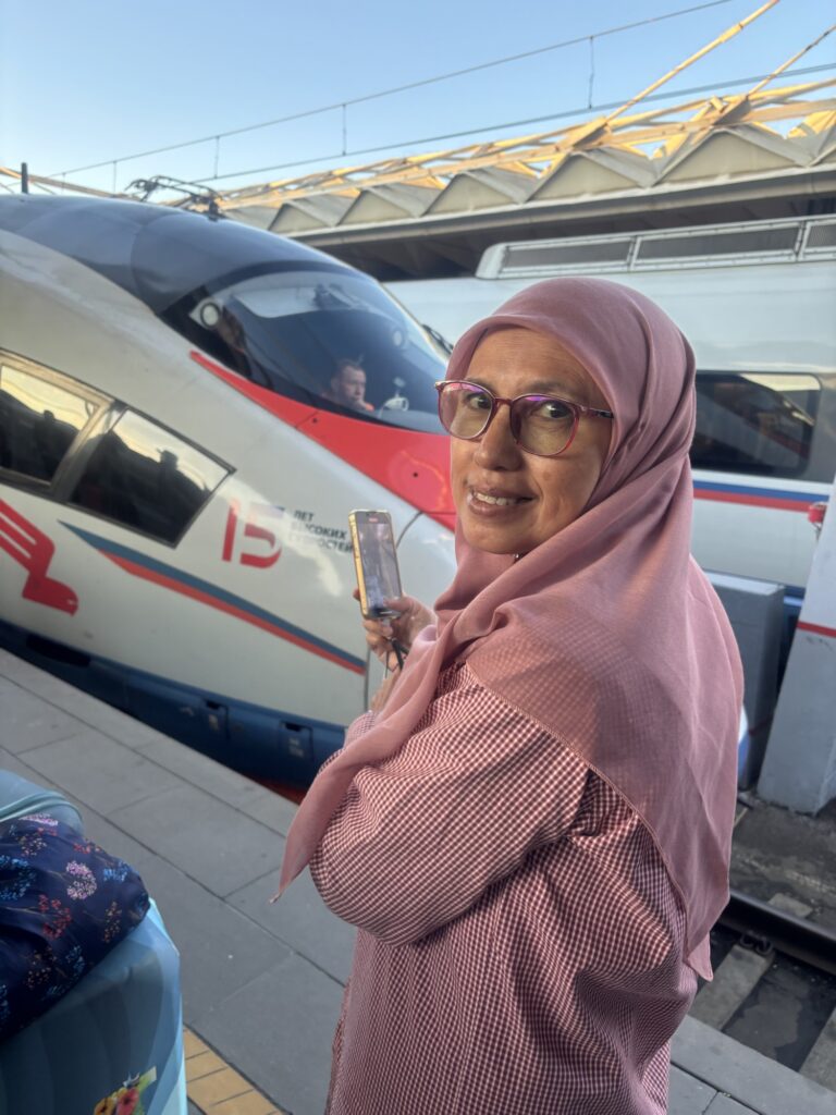 This one was a speed train. Left the station at 19:40 and ETA SP at 23:40. The crowd was crazy at the station;two of us briefly lost the way but they found us later. Alhamdulillah. We waited a few minutes and once the platform was displayed we went in stood around until the train pulled into the station. The crowd suddenly converged at the door; no queues, no line. But no one was pushing and they waited their turn patiently. Unlike some tourists from the other side of the wall that would make everything as chaotic as possible so they could do whatever they wanted to.