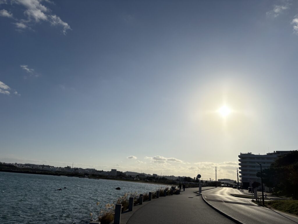 Last day in Okinawa. We stayed in a hotel last night. A hotel with kitchen and a fridge. Everything was cleaned and prepared in perfection. Their level of readiness to receive a customer is mind boggling. I was there as if the first person ever to use the room.  When we left this morning, the sun was high but the wind chill made it feel like below ten degrees.